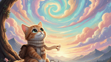 みゃー。なんだか、空気がじめっとして、重い感じがするにゃ…。人間たちは「たいふう」とか言ってるにゃ。お外は風がビュービュー、雨がザーザー、すごい音だにゃ。窓がガタガタ鳴って、怖いから、テーブルの下のい...